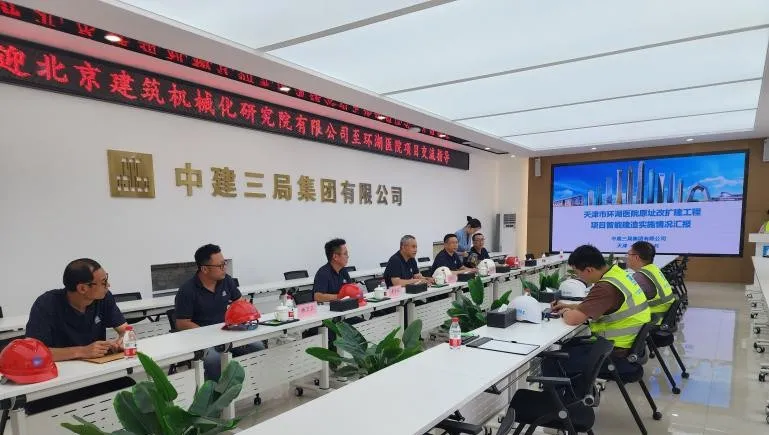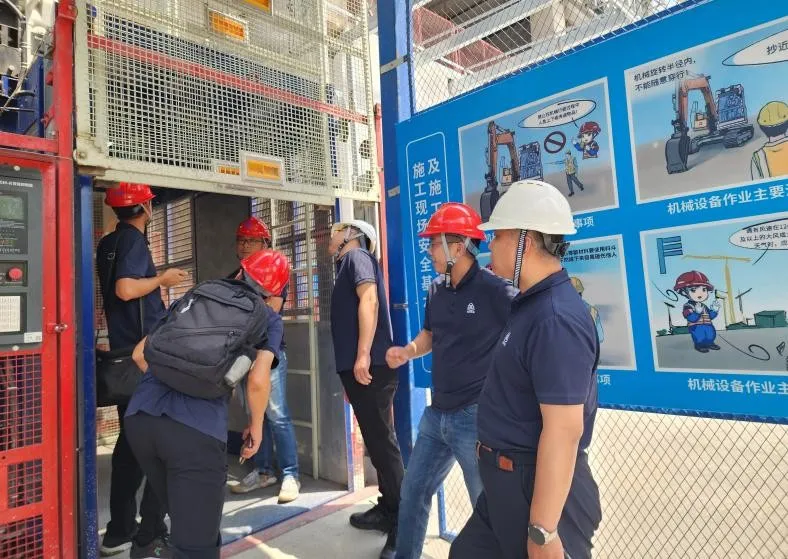 為進一步深入落實《公司安全生產治本攻堅三年行動實施方案(2024—2026年)》,夯實安全生產工作基礎, 6月27日,北京建機院黨委書記、董事長兼總經理宮劍飛帶隊調研天津環湖醫院項目智能施工升降機使用情況并檢查安全生產工作。北京建機院黨委委員、副總經理、分管安全負責人王春琢參加調研檢查。