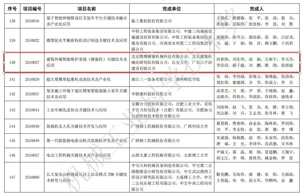 凱博擦窗建筑外墻智能維護系統(擦窗機)關鍵技術及應用榮獲2025年度機械工業科學技術獎(科技進步獎)二等獎